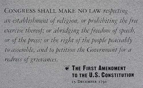 Understanding The First Amendment: Congress shall make no law respecting an establishment of religion, or prohibiting the free exercise thereof; or abridging the freedom of speech, or of the press; or the right of the people peaceably to assemble, and to petition the Government for a redress of grievances.