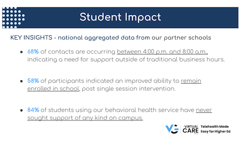 In aggregate data among our nationwide campus partners, we have been able to help colleges care for their students.